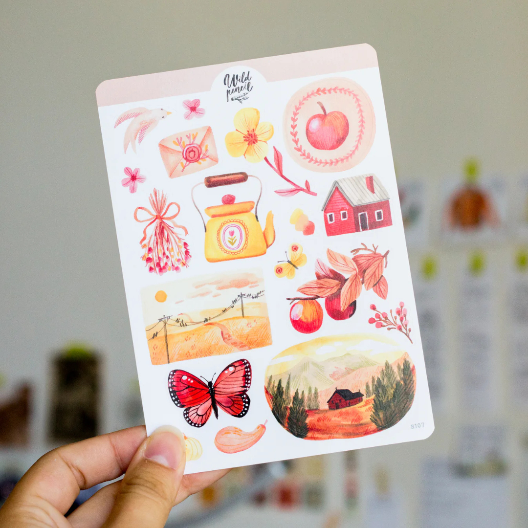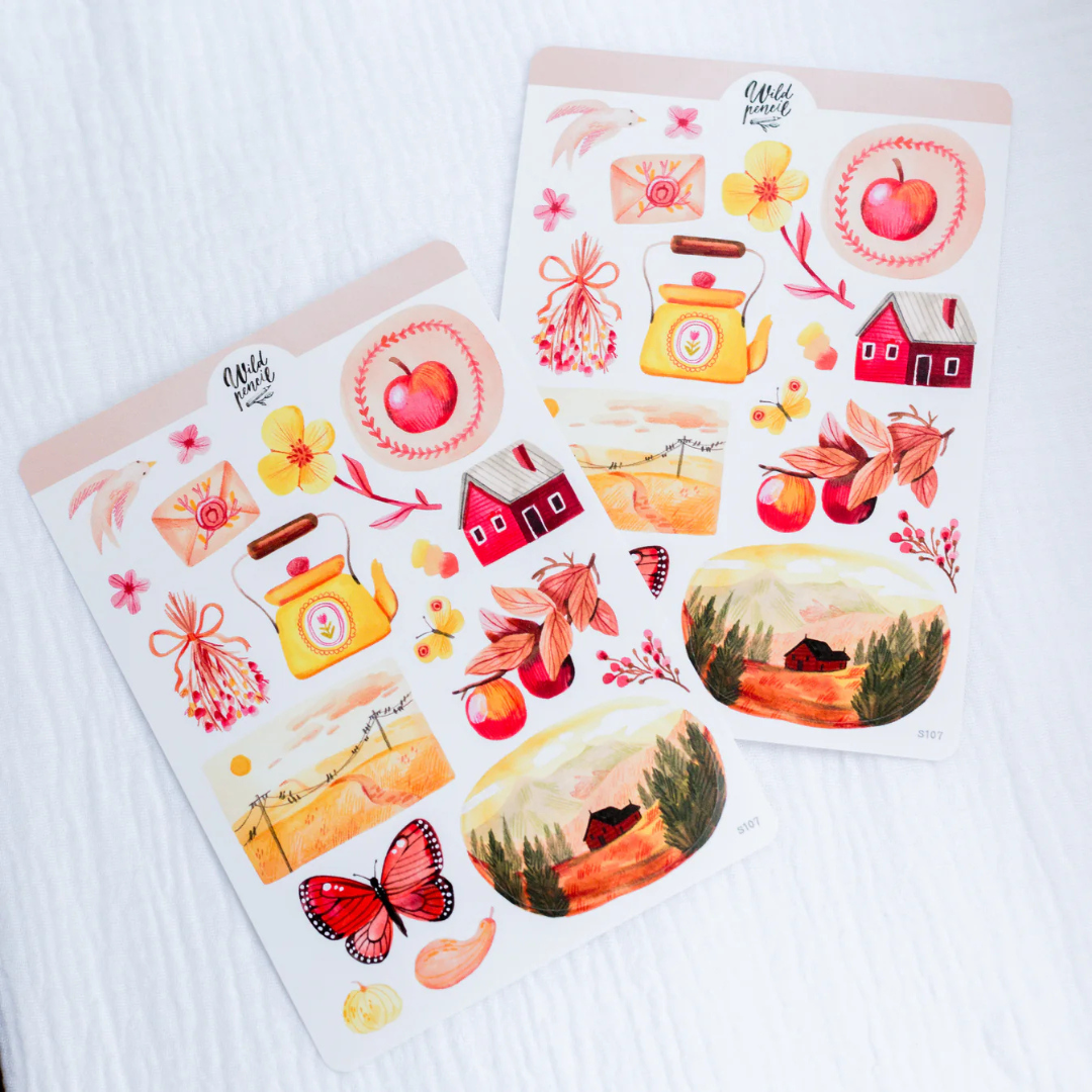 La planche de stickers « Été Indien » signée Wild Pencil évoque la poésie des jours qui ralentissent et des promenades en fin d'après-midi.