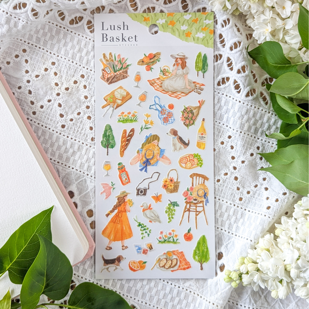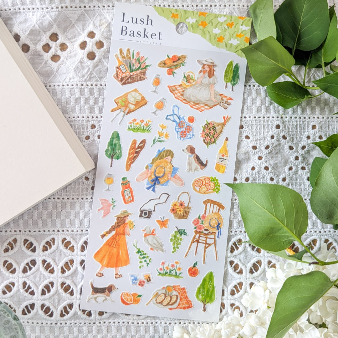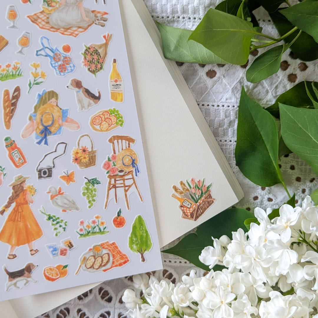 Une jolie nappe étendue sur l’herbe, des fleurs fraîchement cueillies, une bouteille bien fraîche et une baguette encore tiède… Cette planche de stickers signée Mind Wave capture tout le charme simple et ensoleillé d’un pique-nique à la campagne.